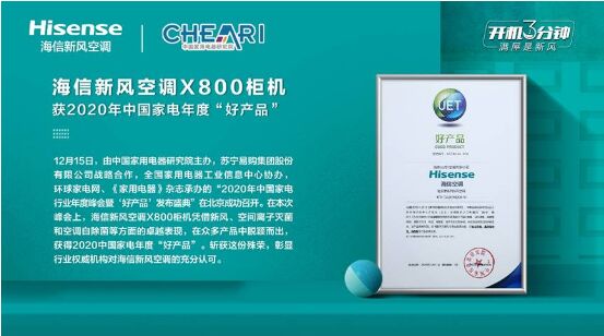 昨天,在中國家用電器研究院主辦,全國家用電器工業(yè)信息中心協(xié)辦的“2020年中國家電行業(yè)年度峰會暨‘好產(chǎn)品’發(fā)布盛典”上,海信新風(fēng)空調(diào)X800柜機(jī)榮獲2020中國家電“好產(chǎn)品”獎。今天,海信新風(fēng)空調(diào)X800掛機(jī)又獲得第12屆中國高端家電及消費(fèi)電子“紅頂獎”提名。