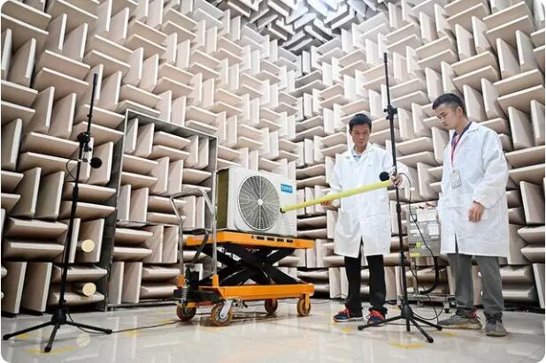 圖為6月2日,技術(shù)人員在柳江區(qū)一家空調(diào)企業(yè)的實(shí)驗(yàn)室里對即將上市的產(chǎn)品開展噪音測試。黎寒池 攝