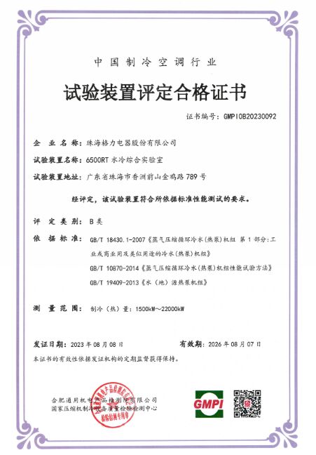 格力6500RT水冷綜合實驗室獲證