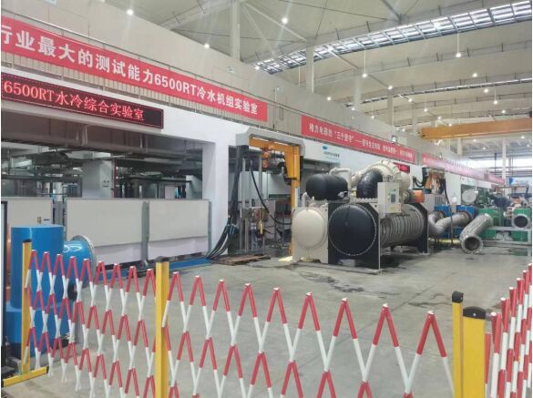 據(jù)介紹,該實驗室最大測試能力高達6500RT,是一個能夠“一室三用”的多系統(tǒng)綜合實驗室,主要針對大型水冷離心機、螺桿機的整機系統(tǒng)運行、性能、可靠性等功能進行檢測。