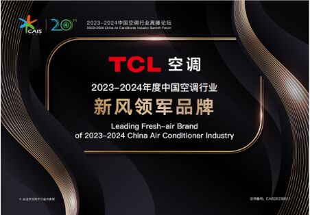 近日,在2023-2024中國空調(diào)行業(yè)高峰論壇上,TCL空調(diào)憑借新風賽道的杰出表現(xiàn),一舉斬獲2023-2024年度中國空調(diào)行業(yè)“新風領(lǐng)軍品牌”,TCL空調(diào)已三度蟬聯(lián)該獎項。同時,在近日舉辦的“美好生活 健康家--2023健康人居公益發(fā)展大會”上,TCL空調(diào)獲頒“健康人居卓越品牌”獎。TCL空調(diào)屢獲殊榮,也與TCL空調(diào)在技術(shù)創(chuàng)新水平和品牌實力方面的突出表現(xiàn)密切相關(guān)。