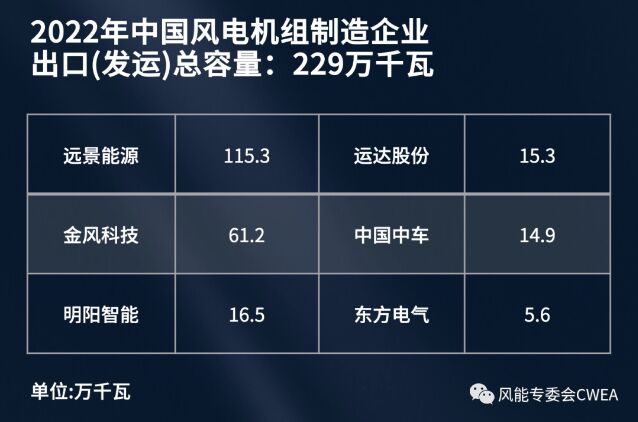 2022年,中國新增風(fēng)電機(jī)組出口(發(fā)運(yùn))容量為229萬千瓦,累計(jì)出口(發(fā)運(yùn))容量達(dá)1193萬千瓦,出口設(shè)備已遍布全球5大洲共49個國家。