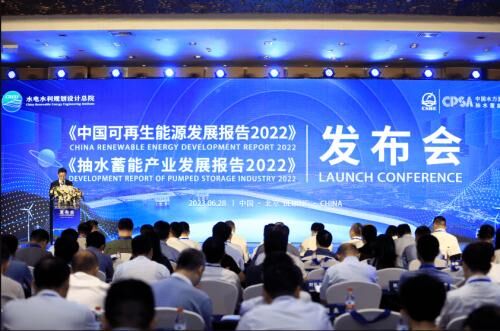 6月28日,水電水利規(guī)劃設(shè)計總院在北京召開《中國可再生能源發(fā)展報告2022》發(fā)布會。國家能源局新能源和可再生能源司副司長熊敏峰,中國電建集團副總經(jīng)理徐鵬程,中國水力發(fā)電工程學會常務(wù)副理事長、秘書長鄭聲安,中國水力發(fā)電工程學會抽水蓄能行業(yè)分會常務(wù)副理事長、秘書長路振剛出席發(fā)布會并致辭。國家發(fā)改委、外交部、生態(tài)環(huán)境部、國務(wù)院國資委、工信部、農(nóng)業(yè)農(nóng)村部、全國人大環(huán)資委,國家能源局、各地方能源局,主要開發(fā)制造企業(yè)、行業(yè)協(xié)會、研究機構(gòu)、金融機構(gòu)及新聞媒體等約500人參加現(xiàn)場發(fā)布,央視網(wǎng)、新華網(wǎng)線上現(xiàn)場直播。發(fā)布會由水電總院院長李N主持,水電總院常務(wù)副院長易躍春發(fā)布了《中國可再生能源發(fā)展報告2022》。