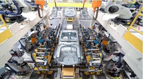 這座占地面積1174畝,建筑面積34.5萬平方米,規(guī)劃年產(chǎn)能30萬輛乘用車的“超級生產(chǎn)車間”里,由AGV串聯(lián)起的各生產(chǎn)島臺有序作業(yè),實(shí)現(xiàn)大規(guī)模柔性定制和混線排產(chǎn),同時生產(chǎn)領(lǐng)克01、01全球版、領(lǐng)克05、領(lǐng)克08車型。