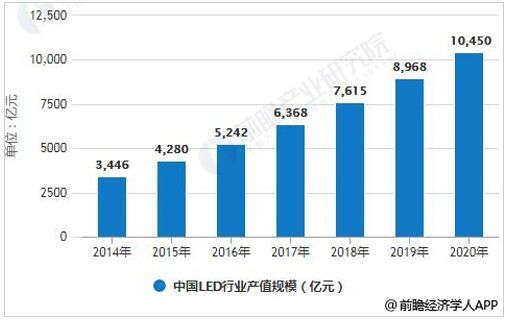 2014-2020年中國LED行業(yè)產(chǎn)值規(guī)模統(tǒng)計(jì)情況及預(yù)測