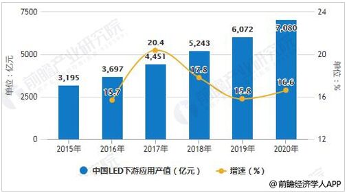 2015-2020年中國LED下游應(yīng)用產(chǎn)值統(tǒng)計(jì)及增長情況預(yù)測