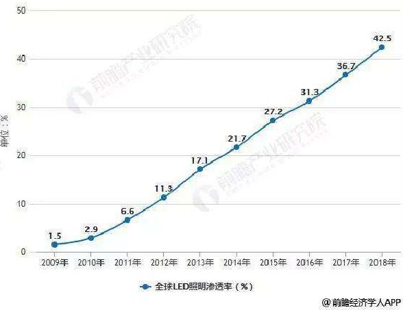 2009-2018年全球LED照明滲透率統(tǒng)計(jì)情況