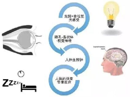 光對(duì)人的生物效應(yīng)可分為視覺效應(yīng)和非視覺效應(yīng)。 (1)光的視覺效應(yīng): 可見光穿過眼睛的角膜,通過晶狀體成像在視網(wǎng)膜上,經(jīng)感光細(xì)胞轉(zhuǎn)化為生理信號(hào),視神經(jīng)接收后產(chǎn)生視覺,從而產(chǎn)生對(duì)空間中物體的顏色、形狀和距離的信息的判斷。視覺還可以引起人們心理機(jī)理反應(yīng),這就是視覺的心理效應(yīng)。 有兩類視覺細(xì)胞:一類是錐狀細(xì)胞,感覺光度和色彩;第二類是桿狀細(xì)胞,只能感知光度,但敏感度是前者的一萬倍。 日常生活中的許多現(xiàn)象屬于光的視覺效應(yīng): 臥室、餐廳、咖啡廳,暖色光(如粉紅色和淺紫色)使整個(gè)空間具有溫暖、輕松的氣氛,同時(shí)使人皮膚、面容顯得更健康。 在夏季,藍(lán)、綠色的光會(huì)使人感覺涼爽;而冬季,紅色使人感覺到溫暖。 強(qiáng)烈的多彩照明可以把氣氛變得活躍和生動(dòng)起來,增加繁華熱鬧的節(jié)日氣氛。 現(xiàn)代家庭居室也常用一些紅綠的裝飾燈來點(diǎn)綴起居室和餐廳,以增加歡樂的氣氛。 有些餐廳既無整體照明,也無桌上吊燈,只用柔弱的星星點(diǎn)點(diǎn)的燭光照明來烘托氣氛。 (2)光的非視覺效應(yīng),ipRGC的發(fā)現(xiàn): 人眼視網(wǎng)膜上存在第三類感光細(xì)胞-內(nèi)在光敏性視網(wǎng)膜神經(jīng)節(jié)細(xì)胞(intrinsicallyphotosensitive reTInal ganglion cells (ipRGCs)),負(fù)責(zé)調(diào)節(jié)機(jī)體視覺以外的非視覺效應(yīng),如管理時(shí)間的功能,協(xié)調(diào)和控制人們?cè)诓煌瑫r(shí)段里的活動(dòng)節(jié)律和幅度。 這種非視覺效應(yīng)也稱司辰視覺效應(yīng)(citopiceffects), 這就是2002年英國Brown大學(xué)的Berson,Dunn和Takao在哺乳動(dòng)物中發(fā)現(xiàn)的,是2002年世界十大發(fā)現(xiàn)之一。 研究表明家鼠的非視覺效應(yīng)在465nm,但對(duì)人類來說,遺傳學(xué)的研究表明應(yīng)在480~485nm(錐狀細(xì)胞和桿狀細(xì)胞的峰值分別為555nm和507nm)。 (3)ipRGC控制生物鐘的原理: ipRGC在人體大腦中有自己的神經(jīng)傳輸網(wǎng)絡(luò),與視覺神經(jīng)傳輸網(wǎng)絡(luò)有很大的不同。接受光后,ipRGC產(chǎn)生生物電信號(hào),傳遞到下丘腦(RHT),之后進(jìn)入視交叉上核(SCN)和腦外神經(jīng)核(PVN),達(dá)到松果體(Pineal)。 松果體是大腦生物鐘的中樞,它會(huì)分泌褪黑素。褪黑素合成后,儲(chǔ)存在松果體內(nèi)。交感神經(jīng)興奮支配松果體細(xì)胞釋放褪黑素到流動(dòng)的血液中,并誘導(dǎo)自然睡眠,因此其是調(diào)節(jié)生理節(jié)律的一種*重要的激素。 褪黑素的分泌具有明顯的晝夜節(jié)律,白天分泌受抑制,晚上分泌活躍。但交感神經(jīng)的興奮度與達(dá)到松果體的光的能量和顏色密切相關(guān),光色和光照強(qiáng)度會(huì)影響褪黑素分泌和釋放。 除了調(diào)節(jié)生物鐘的同時(shí),ipRGC對(duì)人體心率、血壓、警覺性、活力等都產(chǎn)生影響,都屬于光的非視覺效應(yīng)。此外,光引起的生理損傷也應(yīng)該歸到光的非視覺效應(yīng)。