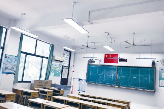 在健康照明方面,“關(guān)注基礎(chǔ)裝備,助力健康成長”工程投入了352.6萬元,將惠及14所學(xué)校,改善159間教室的照明環(huán)境。今年暑假,徐州市開始在部分學(xué)校推廣使用健康節(jié)能護(hù)眼燈(即LED面板燈),進(jìn)一步改善學(xué)校教室照明條件,保護(hù)學(xué)生視力,控制近視新發(fā)病率,改善近視學(xué)生視力。在徐州市第十三中學(xué),每間教室都安裝了9盞健康節(jié)能護(hù)眼燈和3盞黑板燈,打開電源后,柔和的燈光便籠罩在桌面和黑板上。