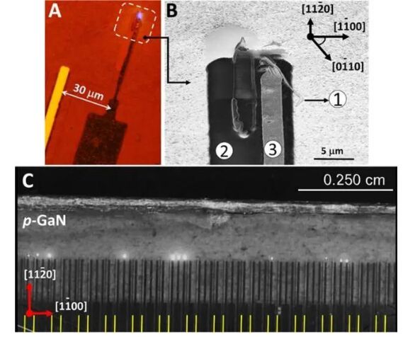 圖|在高電流密度下,鰭式 LED 過(guò)渡到鰭式激光器(來(lái)源:Science Advances)