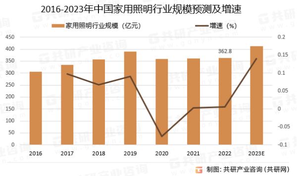 2016-2023年中國家用照明行業(yè)規(guī)模預測及增速
