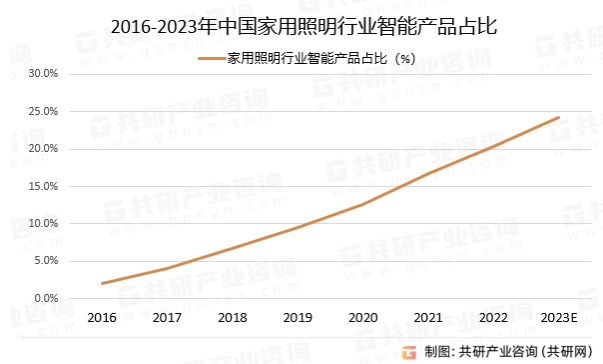 2016-2023年中國家用照明行業(yè)智能產(chǎn)品占比