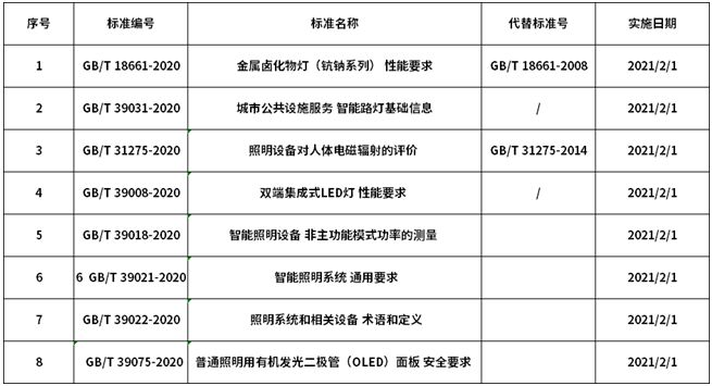 其中,照明類包括“照明設(shè)備對(duì)人體電磁輻射的評(píng)價(jià)”、“雙端集成式LED燈 性能要求”等8項(xiàng)相關(guān)的國(guó)家推薦性標(biāo)準(zhǔn)。本次發(fā)布的照明相關(guān)標(biāo)準(zhǔn)將于2021年2月1日起正式實(shí)施。
