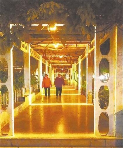 濱河公園的窗臺燈,明滅之間漸次進(jìn)行,打造出時(shí)空隧道的感覺。