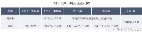 2015年以前,我國(guó)海上風(fēng)電電價(jià)政策基本上以特許權(quán)招標(biāo)為主。隨著2015年12月22日,國(guó)家發(fā)展改革委印發(fā)《關(guān)于完善陸上風(fēng)電光伏發(fā)電上網(wǎng)標(biāo)桿電價(jià)政策的通知》(下稱(chēng)《通知》),我國(guó)開(kāi)啟了海上風(fēng)電固定電價(jià)周期。《通知》首次明確了海上風(fēng)電潮間帶與近海項(xiàng)目的上網(wǎng)電價(jià),分別為0.75元/千瓦時(shí)、0.85元/千瓦時(shí)。
