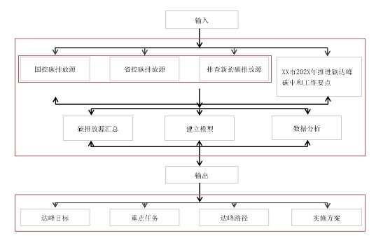圖2展示了某市碳達(dá)峰方案編制的技術(shù)路線(xiàn)圖,明確了編制過(guò)程中主要的輸入輸出。