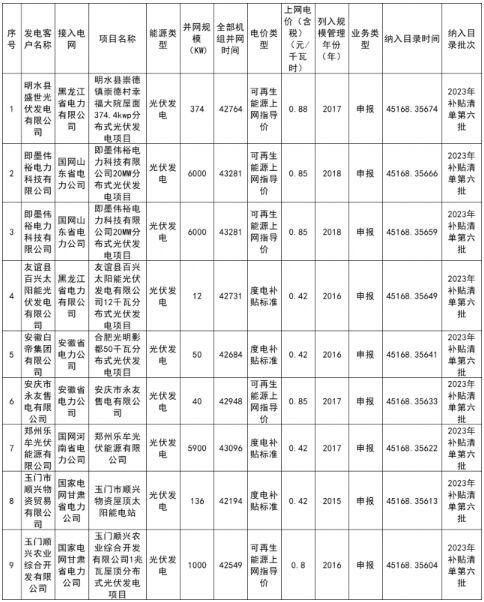 | 國家電網(wǎng)公布2023年第六批可再生能源發(fā)電補貼項目名單 |