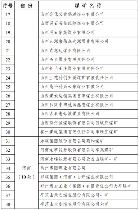 煤礦名單(第九批)的通知