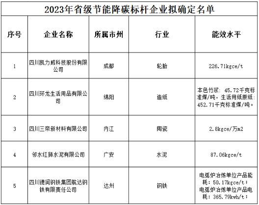 關(guān)于2023年省級(jí)節(jié)能降碳標(biāo)桿企業(yè)擬確定名單的公示