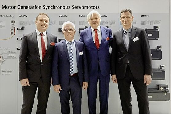 從左至右:Michael Pfister, 德國倍福自動化有限公司驅動技術產品經理;Erwin Fertig,F(xiàn)ertig Motors 公司董事總經理兼聯(lián)合創(chuàng)始人之一;Hans Beckhoff,德國倍福自動化有限公司所有者兼總裁以及第二位 Fertig Motors 公司創(chuàng)始人;Dietmar Hamberger,于 2018 年 2 月 13 日新生產線正式啟動生產之日起擔任 Fertig Motors 公司總經理。