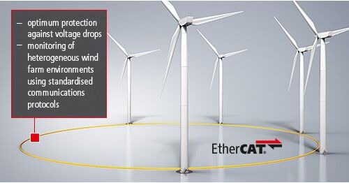 簡化監(jiān)測:借助基于 EtherCAT 的完整控制系統(tǒng) 倍福基于 EtherCAT 的控制解決方案能夠?qū)崿F(xiàn)超高速風場網(wǎng)絡(luò)監(jiān)控,響應(yīng)時間小于 1 毫秒,尤其可以簡化大型設(shè)備的監(jiān)測,包括海上和偏遠地區(qū)的大型設(shè)備。 EtherCAT