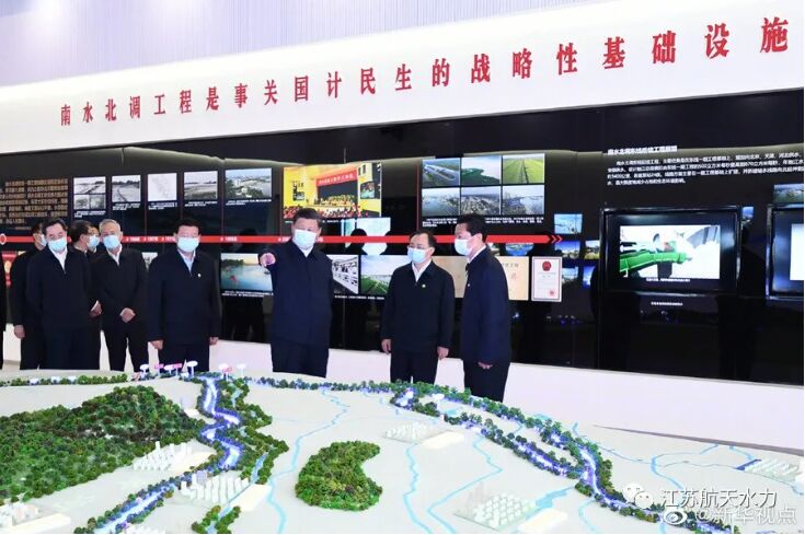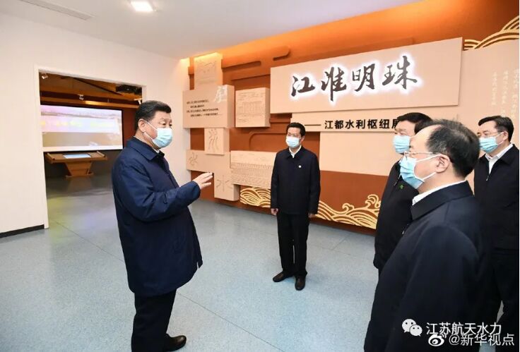 習(xí)近平總書(shū)記考察江都水利樞紐工程現(xiàn)場(chǎng) (圖片來(lái)源:新華視點(diǎn))