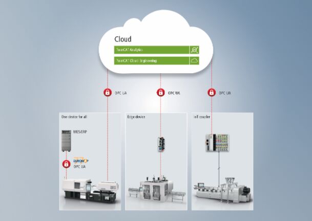 基于 PC 的控制技術(shù),即倍福基于 PC 和 EtherCAT 的控制與驅(qū)動技術(shù),為提升塑料加工設(shè)備和系統(tǒng)的可持續(xù)性提供了巨大潛力。軟件基于 TwinCAT 3 Plastic Framework 、 TwinCAT Analytics 數(shù) 據(jù) 分 析 解 決 方 案 和 基 于TwinCAT OPC UA 通信協(xié)議的 Euomap 標(biāo)準(zhǔn)。在硬件方面,例如,用于能源監(jiān)測的 EtherCAT 端子模塊和伺服電機、驅(qū)動作為液壓方案的替代方案,發(fā)揮了至關(guān)重要的作用。