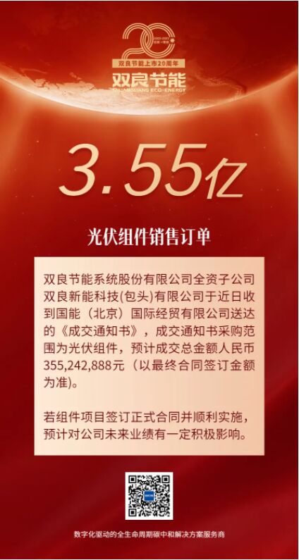雙良節(jié)能簽訂3.55億元光伏組件銷(xiāo)售訂單