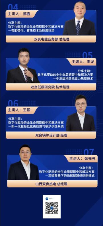 本屆展會在帶來供熱技術產品與解決方案的同時,還安排了雙良智慧供熱論壇,精心準備了六大主題,圍繞雙良雙碳碳中和解決方案、工業(yè)/公建碳中和解決方案、電能替代、蓄熱技術及應用場景、綜合能源數(shù)字化管理平臺、中深層地熱能重力熱管技術及新一代超凝低氮高效燃氣鍋爐供熱系統(tǒng)等主題深入展開,邀請了6位來自雙良的行業(yè)大咖,與各位觀眾共同描繪安全低碳、清潔高效、智慧經(jīng)濟的新型供熱發(fā)展藍圖。