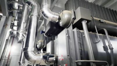 長輸中繼能源站大溫差項目,采用16臺60MW溴化鋰吸收式換熱機組降低零次側熱網(wǎng)回水溫度,熱網(wǎng)回水利用電廠或工業(yè)余熱進行加熱,一個采暖期余熱供熱可實現(xiàn)二氧化碳減排32.75萬噸。