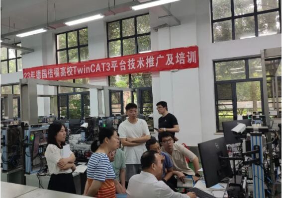 2023 年 5 月 31 日,華中科技大學(xué) — 倍福聯(lián)合實(shí)驗(yàn)室成功舉辦了首期 TwinCAT 3 平臺技術(shù)推廣及培訓(xùn)活動。此次活動旨在幫助全國高校和科研院所快速了解和掌握倍福的綜合性軟件技術(shù)平臺 TwinCAT 3,同時促進(jìn)高校新工科建設(shè)改革。倍福的產(chǎn)品專家與華中科技大學(xué)機(jī)械學(xué)院黃弢教授團(tuán)隊(duì)共同為來自哈爾濱工業(yè)大學(xué)、河北工程大學(xué)等高等院校的近 30 名教師進(jìn)行了為期兩天的系統(tǒng)培訓(xùn)。