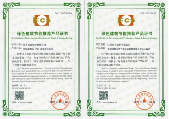 近日,經(jīng)中國工程建設(shè)標(biāo)準(zhǔn)化協(xié)會綠色建筑節(jié)能產(chǎn)品專家委員會審查、評定,江蘇雙良鍋爐有限公司(簡稱“雙良鍋爐”)研發(fā)生產(chǎn)的全自動燃油(氣)真空熱水機(jī)組、全自動燃天然氣模塊組裝超低氮水管熱水鍋爐,符合相關(guān)要求,再度被授予“綠色建筑節(jié)能推薦產(chǎn)品證書”,在工程建設(shè)領(lǐng)域推薦使用。