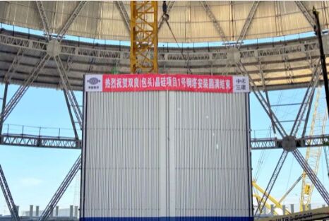 雙良節(jié)能三期50GW單晶硅項(xiàng)目全鋼結(jié)構(gòu)間冷塔順利封頂
