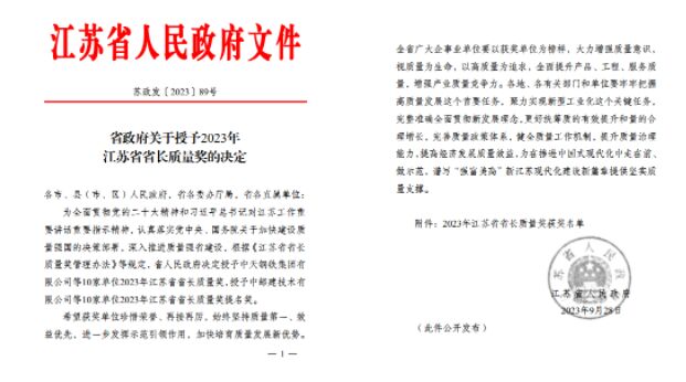 作為經(jīng)濟大省、制造業(yè)大省,江蘇歷來重視質(zhì)量強省建設,發(fā)力打造的質(zhì)量和品牌綜合實力位居全國前列,江蘇省省長質(zhì)量獎是江蘇省政府設立的質(zhì)量領域最高獎項,包括“江蘇省省長質(zhì)量獎”和“江蘇省省長質(zhì)量提名獎”兩個獎項,主要授予全省范圍內(nèi)質(zhì)量管理模式先進、成效卓越,體現(xiàn)標桿引領作用的各類組織,每年評定一次,評定數(shù)量各不超過10個。