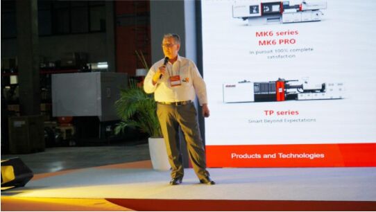 震雄集團(tuán)董事、策略及營(yíng)銷總監(jiān)鐘效良先生也到場(chǎng)參與了本次慶典活動(dòng)。圍繞“創(chuàng)新和新產(chǎn)品”的主題,向現(xiàn)場(chǎng)賓客們?nèi)娣窒砹苏鹦圩⑺軝C(jī)的價(jià)值優(yōu)勢(shì)。并結(jié)合實(shí)際案例,深入淺出地介紹了以自動(dòng)化、智能化為特點(diǎn)的制造升級(jí)給企業(yè)帶來(lái)的顛覆性變化。