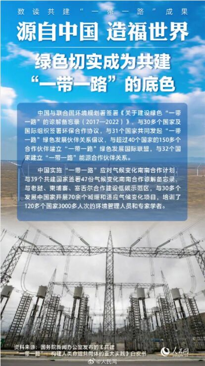 “一帶一路”綠色合作十年成就舉世矚目,中國為推進全球環(huán)境治理作出實實在在的貢獻(xiàn),為共建清潔美麗世界提供不竭動力。(圖片來源:人民網(wǎng))
