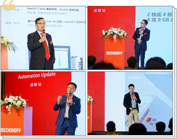 會(huì)上,來自倍福中國的產(chǎn)品專家分享了 Beckhoff 硬件產(chǎn)品、TwinCAT 3 4026 版本、Beckhoff 智能輸送系統(tǒng) XTS 和 XPlanar,以及智慧工廠解決方案等精彩內(nèi)容。此外,倍福特邀成都運(yùn)泰利自動(dòng)化的技術(shù)專家,與大家一起探討基于 PC 的控制技術(shù)如何助力電子行業(yè)智慧工廠平臺(tái)的構(gòu)建,為與會(huì)者提供了更全面的視角和解決方案。