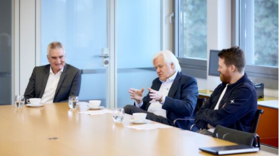 Hans Beckhoff(中間)和 Martin Rostan(左)回顧 EtherCAT 技術過去 20 年的發(fā)展歷程并與代表下一代管理層的 Johannes Beckhoff(右)分享了他們多年積累的經(jīng)驗