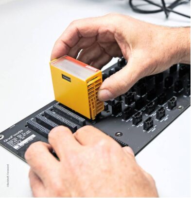 每個(gè) Makeline 模塊都采用了 EJ 系列 EtherCAT 插拔式 TwinSAFE 安全模塊,它們安裝在一個(gè)定制設(shè)計(jì)的 PCB 板(信號(hào)分配電路板)上。這些 EJ 插拔式模塊比采用傳統(tǒng)方式接線的 I/O 端子模塊的體積小了大約 50%,此外,它們還可以降低不正確接線的風(fēng)險(xiǎn)。