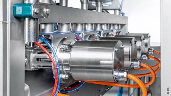 Foodjet 公司使用了一臺搭載 Intel® CoreTM i7 四核處理器的 CX2040 嵌入式控制器,確保在 150 μs 內完成計算過程,并通過 EtherCAT 傳輸計算結果,完成最重要的實際打印任務。填充打印頭中的緩沖區(qū)可能需要更長的時間,而伺服泵的運動控制任務,Ed de Leur 估計需要 500 μs。最后,還有 HMI、安全功能和壓力測量等一些常規(guī)任務,對于這些任務,50 毫秒的周期時間就足夠了。Ed de Leur 對倍福平臺提供的自由選擇非常滿意:“倍福的 I/O 產(chǎn)品種類非常豐富,不僅有用于控制閥門或泵的標準端子模塊,還有一些特殊型號!