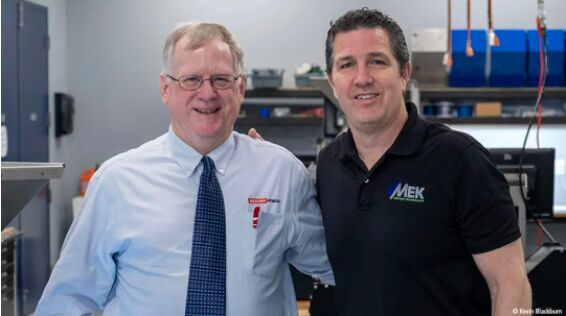 VMek 公司總經(jīng)理 Kent Lovvorn(右)和倍福區(qū)域銷售工程師 Chuck Padvorac 緊密合作,選擇出合適的 EtherCAT 解決方案。