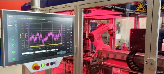 壓印是傳感器隔離膜片生產(chǎn)過程中一個不可或缺的的中間加工步驟,凱樂公司項目經(jīng)理 Florian Wernli 解釋道:“我們的大部分壓力傳感器都封裝在充油不銹鋼外殼中。隔離膜片對于通過油將周圍介質(zhì)的壓力傳輸至傳感器內(nèi)的測量芯片中來說至關(guān)重要。”這就需要通過一臺性能強大的自動壓印機將隔離膜片壓印成特殊的形狀。凱樂公司開發(fā)與生產(chǎn)裝備部 Bruno Thalmann 補充道:“在經(jīng)過泄漏檢測、用壓縮空氣清潔和熱平衡處理后,我們在同一工藝步驟中使用氫傳感器在高壓條件下進行壓印并進行確定性泄漏試驗。隨后使用圖像處理和人工智能進行誤差檢測!眽河C的核心部分是一臺 KUKA 機器人,它用作拾放單元,將坯件送至加工位置,并將已完成的工件分成合格品(OK)和不合格品(NOK)兩個部分。