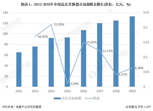 由于高壓變頻器的應(yīng)用領(lǐng)域和高效節(jié)能的市場(chǎng)需求與鼓勵(lì)政策,高壓變頻器市場(chǎng)規(guī)模一直保持著較高的增長(zhǎng)率,而中低壓變頻器因?yàn)槭莻(gè)強(qiáng)周期行業(yè),與國(guó)家經(jīng)濟(jì)周期緊密相關(guān),受社會(huì)融資增速放緩、中美貿(mào)易戰(zhàn)焦灼不下、3C產(chǎn)品銷售市場(chǎng)低迷,汽車行業(yè)持續(xù)下行等因素影響,低壓變頻器市場(chǎng)同比出現(xiàn)下滑。預(yù)計(jì)2025年到2025年,高壓變頻器的市場(chǎng)規(guī)模將突破200億元,中低壓變頻器則將達(dá)到400億元以上。 我國(guó)高壓變壓器增速呈波動(dòng)趨勢(shì) 高壓變壓器主要應(yīng)用領(lǐng)域涉及電力,礦業(yè),水泥,水泥、冶金、石化等行業(yè),可實(shí)現(xiàn)對(duì)各類高壓電動(dòng)機(jī)驅(qū)動(dòng)的風(fēng)機(jī)、水泵、空氣壓縮機(jī)、提升機(jī)、皮帶機(jī)等負(fù)載的軟啟動(dòng)、智能控制和調(diào)速節(jié)能,從而有效提高工業(yè)企業(yè)的能源利用效率、工藝控制及自動(dòng)化水平。其中通用高壓變頻器主要是通過調(diào)節(jié)電機(jī)轉(zhuǎn)速實(shí)現(xiàn)節(jié)能目的,主要應(yīng)用于電力、礦業(yè)、冶金、水泥等領(lǐng)域的風(fēng)機(jī)、泵類傳動(dòng)控制。我國(guó)高壓變頻器市場(chǎng)一直保持著較高的增長(zhǎng)率。2012-2019年,高壓變頻器市場(chǎng)規(guī)模持續(xù)增長(zhǎng),增速呈波動(dòng)趨勢(shì)。 2019年我國(guó)高壓變頻器市場(chǎng)規(guī)模達(dá)到133億元,增速達(dá)到6.4%。預(yù)計(jì)未來我國(guó)高壓變頻器市場(chǎng)規(guī)模仍會(huì)繼續(xù)增加。