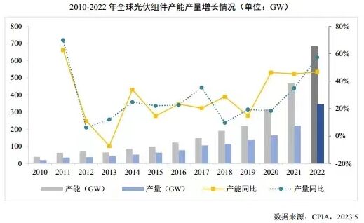從生產(chǎn)規(guī)模來看,2022年我國光伏組件產(chǎn)能、產(chǎn)量分別達(dá)551.9吉瓦、294.7吉瓦,同比分別增長53.7%、62.1%,產(chǎn)業(yè)整體規(guī)模進(jìn)一步擴(kuò)大。