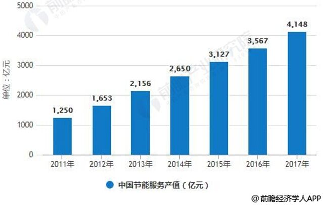 節(jié)能服務(wù)行業(yè)基本概況分析。節(jié)能服務(wù)行業(yè)以各種專業(yè)性的節(jié)能服務(wù)公司為主體,以能源消費(fèi)者為客戶,幫助客戶解決節(jié)能運(yùn)營改造的技術(shù)和執(zhí)行問題,是現(xiàn)代服務(wù)業(yè)的重要組成部分。 節(jié)能服務(wù)項(xiàng)目主要分布在建筑、工業(yè)和交通運(yùn)輸領(lǐng)域,接受節(jié)能服務(wù)的目的在于減少能源消耗、提高能源使用效率、降低污染排放等。 中國節(jié)能服務(wù)產(chǎn)業(yè)產(chǎn)值分析預(yù)測 據(jù)前瞻產(chǎn)業(yè)研究院發(fā)布的《節(jié)能服務(wù)行業(yè)市場前瞻與投資戰(zhàn)略規(guī)劃分析報告》統(tǒng)計(jì)數(shù)據(jù)顯示,2017年中國節(jié)能服務(wù)產(chǎn)業(yè)產(chǎn)值達(dá)4148億元,全國從事節(jié)能服務(wù)的企業(yè)6137家,行業(yè)從業(yè)人數(shù)68.5萬人,合同能源管理投資形成年節(jié)能能力超過3800萬噸標(biāo)準(zhǔn)煤,年減排二氧化碳突破1億噸,節(jié)能服務(wù)產(chǎn)業(yè)繼續(xù)保持了良好發(fā)展勢頭。預(yù)計(jì)2018年我國節(jié)能服務(wù)業(yè)總產(chǎn)值將達(dá)到4688億元,未來五年(2018-2022)年均復(fù)合增長率約為13.35%,預(yù)測到了2022年我國節(jié)能服務(wù)業(yè)總產(chǎn)值將達(dá)到7740億元。