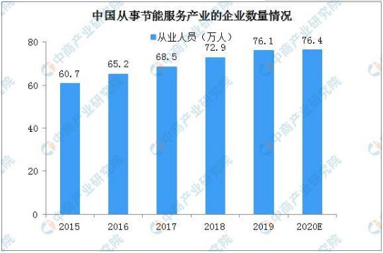 節(jié)能服務行業(yè)從業(yè)規(guī)模不斷擴大,行業(yè)從業(yè)人數(shù)達76.10萬人,比“十二五”末期增長25.37%。預計2020年行業(yè)從業(yè)人員規(guī)模將保持在76萬人左右。