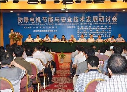 由中國電器工業(yè)協(xié)會和南陽防爆集團股份有限公司聯(lián)合主辦的防爆電機節(jié)能與安全技術發(fā)展研討會在南陽隆重召開。 上午8時30分,金凱悅酒店四樓會議大廳內(nèi),群賢畢至、高朋滿座。中國機械工業(yè)聯(lián)合會顧問、中國電器工業(yè)協(xié)會終身名譽會長、機械工業(yè)部原常務副部長陸燕蓀,中國工程院院士張鐵崗,國家能源局資源節(jié)約與科技裝備司副司長黃鸝,工業(yè)和信息化部運行監(jiān)測協(xié)調(diào)局副局長景曉波、國家煤礦安全監(jiān)察局科技裝備司副司長彎效杰,財政部經(jīng)濟建設司能源處副處長向弟海,中國機械工業(yè)聯(lián)合會執(zhí)行副會長兼秘書長趙馳,中國電器工業(yè)協(xié)會會長邢玉久,中國電器工業(yè)協(xié)會副會長兼秘書長方曉燕,省工業(yè)和信息化廳副廳長趙為生,省發(fā)改委工業(yè)處處長郜義,英國PPI工程公司總裁Mike Robinson等單位的300多名領導和專家出席會議,市委書記李文慧、市長穆為民為研討會發(fā)來賀信,副市長崔軍代表市四大班子領導致辭并主持歡迎晚宴。