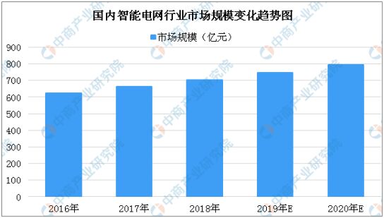智能電網(wǎng)行業(yè)前景廣闊 自從2009年中國國家電網(wǎng)公司公布智能電網(wǎng)計劃以來,如今已經(jīng)走進(jìn)了第三階段,即引領(lǐng)提升階段。智能電網(wǎng)是當(dāng)今世界電力、能源產(chǎn)業(yè)發(fā)展變革的體現(xiàn),是實(shí)施新的能源戰(zhàn)略和優(yōu)化能源資源配置的重要平臺!盎ヂ(lián)網(wǎng)+”的風(fēng)口下,智能電網(wǎng)必將開啟能源與互聯(lián)網(wǎng)有機(jī)結(jié)合的大門,智能電網(wǎng)布局也成為了國家搶占未來低碳經(jīng)濟(jì)制高點(diǎn)的重要戰(zhàn)略措施。 隨著智能電網(wǎng)行業(yè)的高速發(fā)展,據(jù)預(yù)測,到2020年我國智能電網(wǎng)行業(yè)市場規(guī)模將近800億元,智能電網(wǎng)行業(yè)前景十分廣闊。