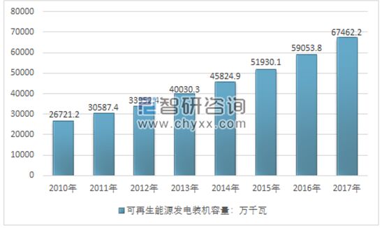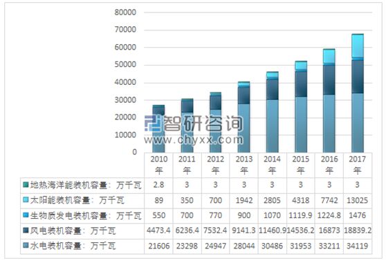 2010-2017年中國可再生能源裝機(jī)結(jié)構(gòu)