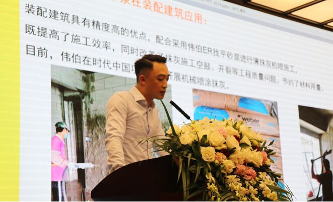 論壇伊始,圣戈班偉伯(廣州)建材有限公司高級經(jīng)理雙飛探討了裝配式建筑輔材及機械化施工工藝。